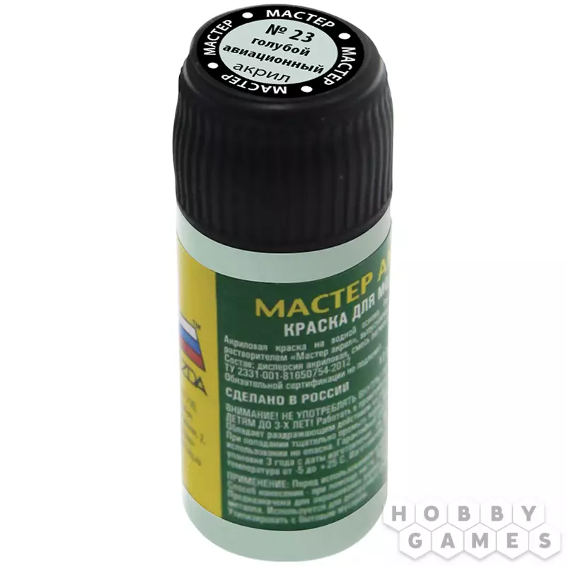 "Мастер акрил" от компании Zvezda – это акриловые краски на водной основе, полностью готовые для работы. Просто разбавьте их водой, и принимайтесь за дело! Они подойдут для окрашивания моделей из любого материала, будь то пластик, дерево, бумага или металл. Использовать краски можно как для окрашивания кистью, так и с помощью аэрографа, но для этого рекомендуется разбавить краски растворителем "Мастер акрил" от компании Zvezda.
