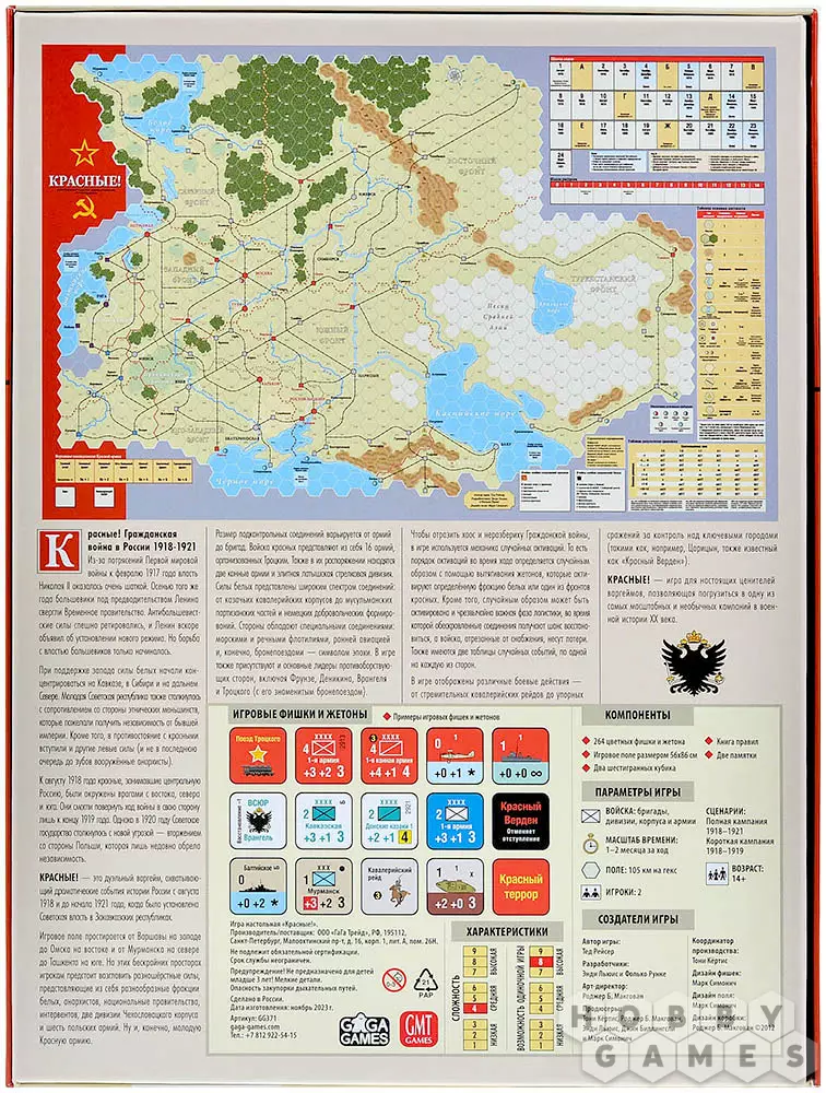 "Красные!" – это не просто игра, это путешествие во времени. Первая мировая война, революции, падение монархии и рождение советской власти – все эти события стали отправной точкой для самого сурового конфликта в истории России, который лёг в основу этого варгейма. Каждая партия охватывает ключевой период Гражданской войны с августа 1918 по апрель 1921 года. Приготовьтесь к напряжённым стратегическим баталиям: вас ждёт многоэтапный игровой процесс, сочетающий стратегическое планирование и оперативные действия. Усиливайте свои армии, определяйте условия победы и бросайте войска в бой! Каждый ход – это череда непредсказуемых событий, требующих мгновенной реакции и стратегического мышления.