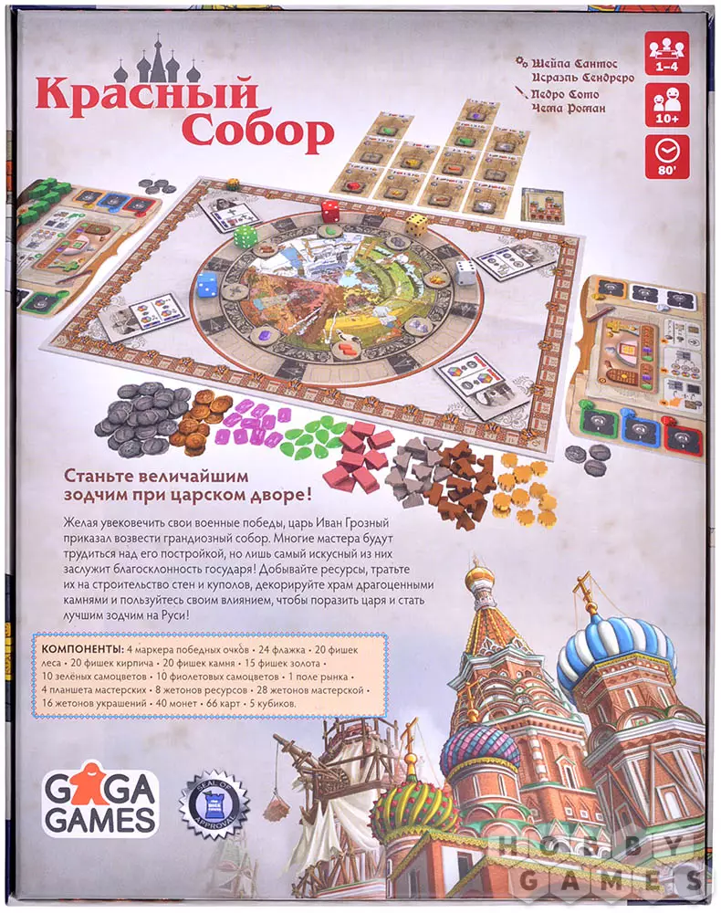 Валерий22.05.2023 11:40Отличная игра! На момент написания отзыва было сыграно ок. 5 партий, интерес сохраняется с завидным постоянством. :) Из наиболее примечательных плюсов: + прекрасная тематика. Православный сеттинг - не частый гость в мире настолок, так что "Красный Собор" предлагает весьма уникальный опыт приобщения к русской православной культуре (для меня этот пункт стал решающим); + удивительное оформление. Стиль, вдохновлённый, по всей видимости, творчеством И. Я. Билибина, эффективно работает на атмосферу, погружая игроков в мир эстетики архитектуры Православной Церкви в контексте её восточно-славянского измерения. + неплохая реиграбельность. Различная конфигурация секций собора и расположение ресурсов на игровом поле вносят необходимое разнообразие в игровой процесс. + качественное исполнение материалов. Ресурсы, карточки, кубики, планшет игрока, 3 вида украшений (двери, окна, Крест) - всё выполнено на высоком уровне и приятно ощущается в руках.