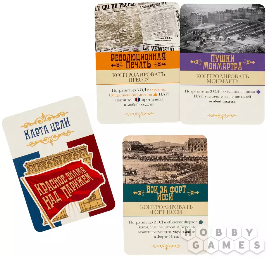 Ваши решения определят исход игры: будете ли вы давить противника военной силой или одержите победу через политическое влияние? Сможете ли удержать ключевые районы Парижа или проиграете из-за нехватки ресурсов? Каждый раунд – это новый вызов, требующий гибкости и стратегического мышления.
