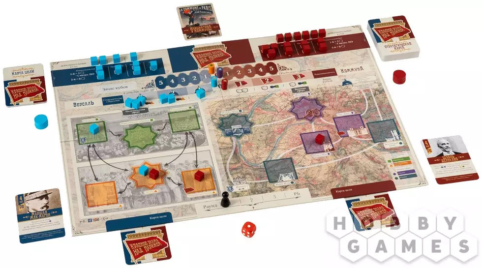 "Красное Знамя над Парижем" – асимметричная дуэльная стратегия, которая переносит вас в эпоху Парижской Коммуны. Игровое поле разделено на политические и военные сферы, где вы будете бороться за контроль над ключевыми областями. Визуальный стиль игры погружает в историческую атмосферу: от иллюстраций на картах до детализированного игрового поля, вдохновлённого событиями того периода.