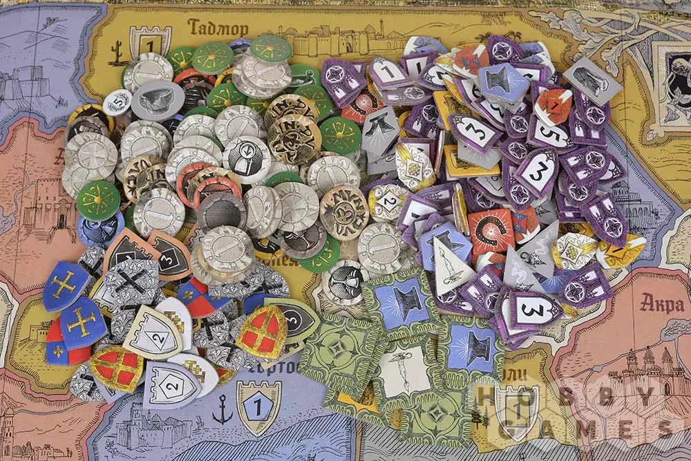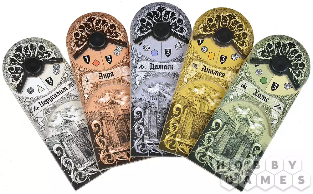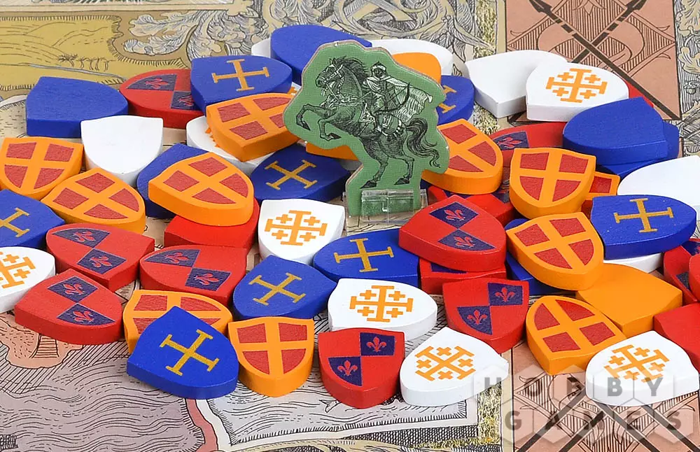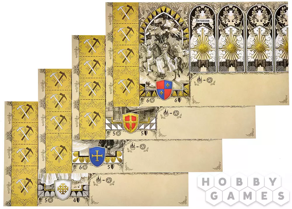 Каждый игрок выбирает одно из четырёх государств, которым он будет управлять, – Иерусалим, Триполи, Эдесса или Антиохия, – получает его планшет, фишки отрядов и епископов, стартовые монеты, жетоны приказов и карты тактики.