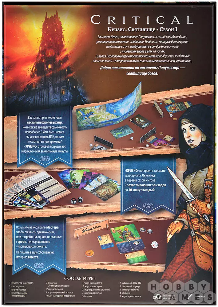 Перед вами настольная ролевая игра "Кризис: Святилище", в которой вам под управлением Мастера предстоит совершить невероятное путешествие на архипелаг Полумесяца – в святилище богов. Создайте своего героя и вживитесь в его роль! Описывайте свои действия, принимайте командные решения, совершайте проверки, а Мастер будет вести вас по этому увлекательному миру эпизод за эпизодом. Раскройте тайну архипелага, одолейте чудовищ и принесите этому миру спокойствие.