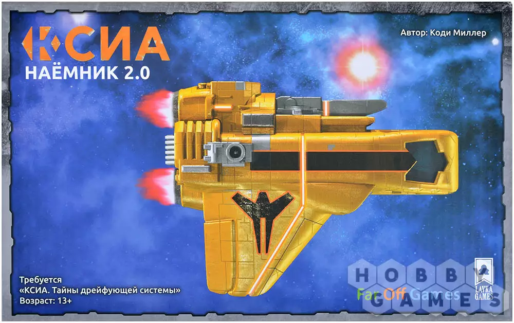 "Ксиа: Наёмник 2.0" – это дополнение, в котором вы сможете нанять ещё корабль под своё управление. В игре он только один, поэтому каждый игрок может взять его под контроль. Наёмник может совершать ходы только в свою очередь, а уничтоженные им корабли не приносят контролирующему его игроку ни славу, ни кредитов. Но зато он на вашей стороне, а огневая мощь никогда не бывает лишней. Однако помните: есть наёмник будет уничтожен, вы потеряете его карту, и он снова будет доступен для вербовки любому игроку.