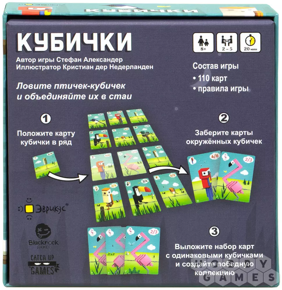 Корнийчук09.11.2021 01:56Весёлая, быстрая игра! Интересна всем, хотя и кажется детской по первому взгляду на коробку! Приятные и качественные карточки, понятные правила с примерами!