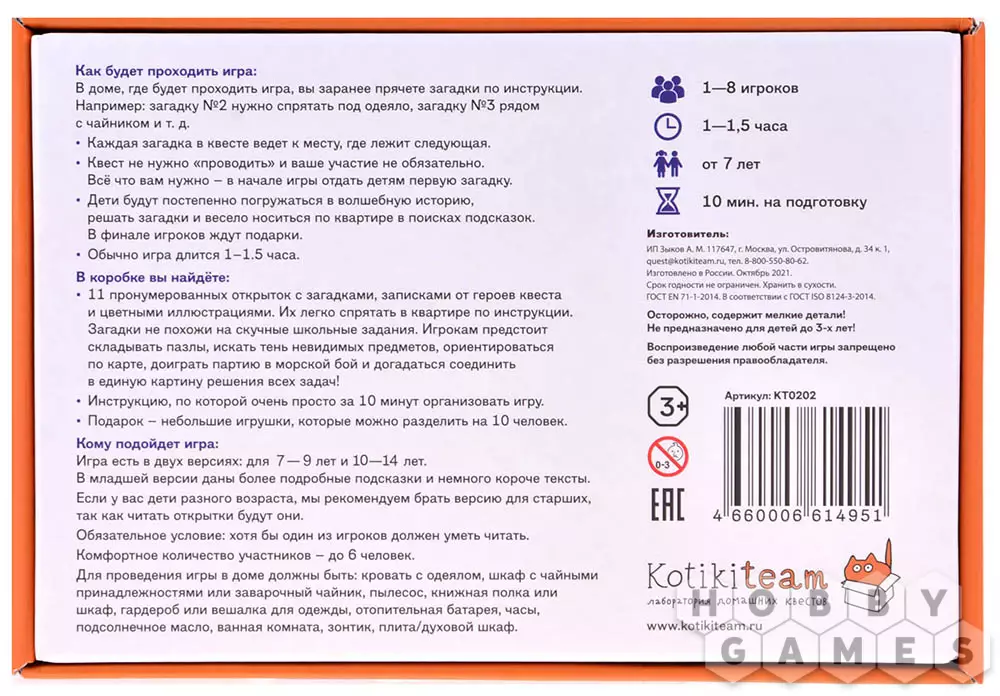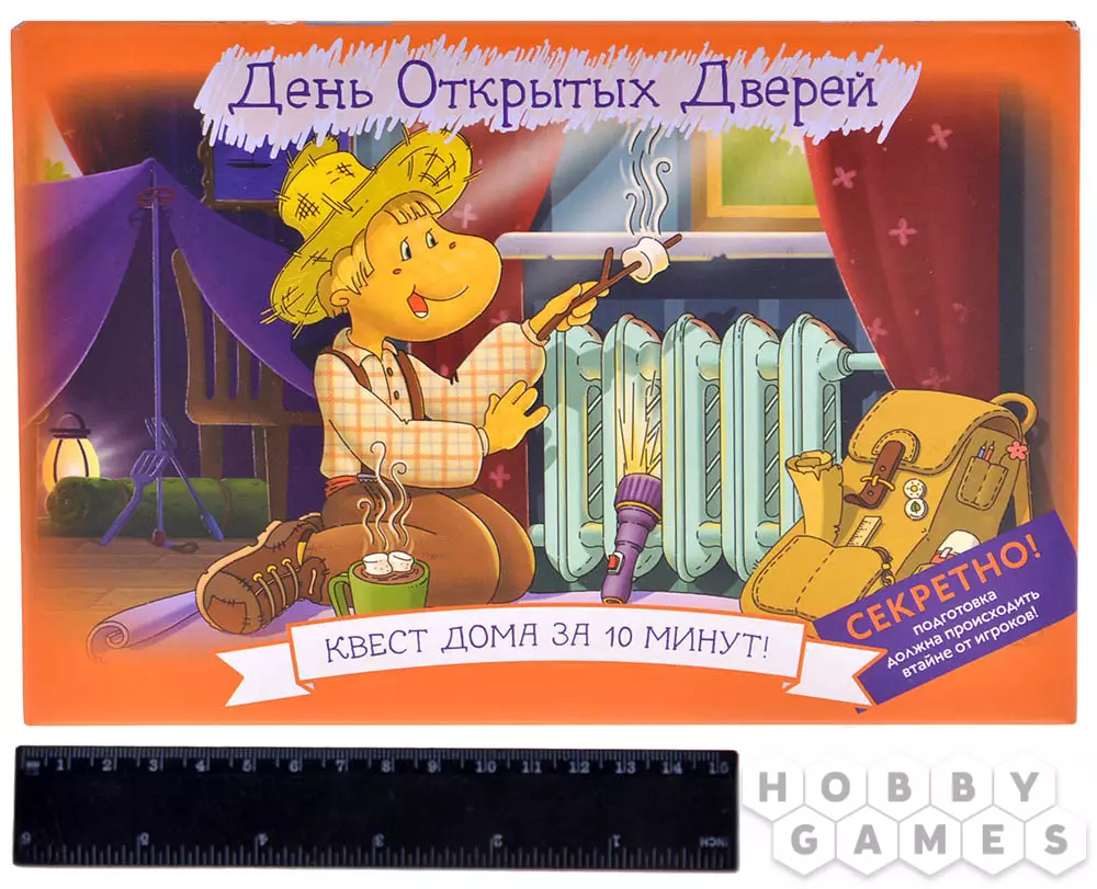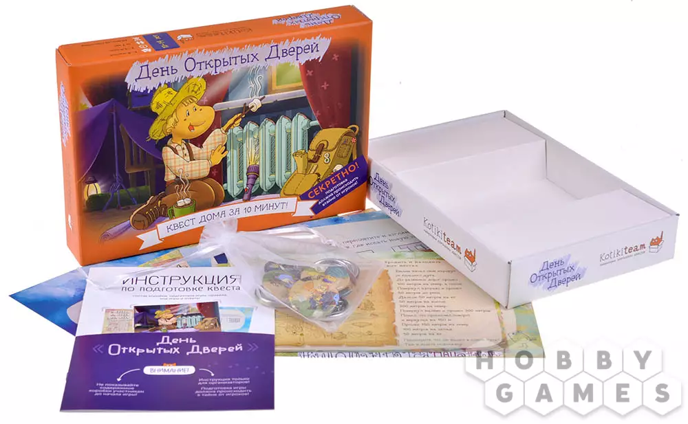 Квест "День Открытых Дверей" поможет детям стать самыми настоящими детективами! Им предстоит решать одну задачку за другой, чтобы которые в конечном итоге приведут к результату и расскажут историю целиком. Всё необходимо для увлекательно мероприятия уже есть внутри этой небольшой коробочки. Всё, что от вас потребуется – 10 минут, чтобы спрятать дома загадки согласно инструкции. Этот квест есть в двух версиях для разных возрастных категорий: данная коробка отлично подойдёт для детей 10-14 лет. Отличие коробок в сложности задач и объёме текста, который понадобиться читать в процессе решения задач.