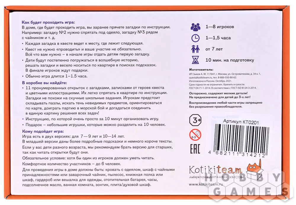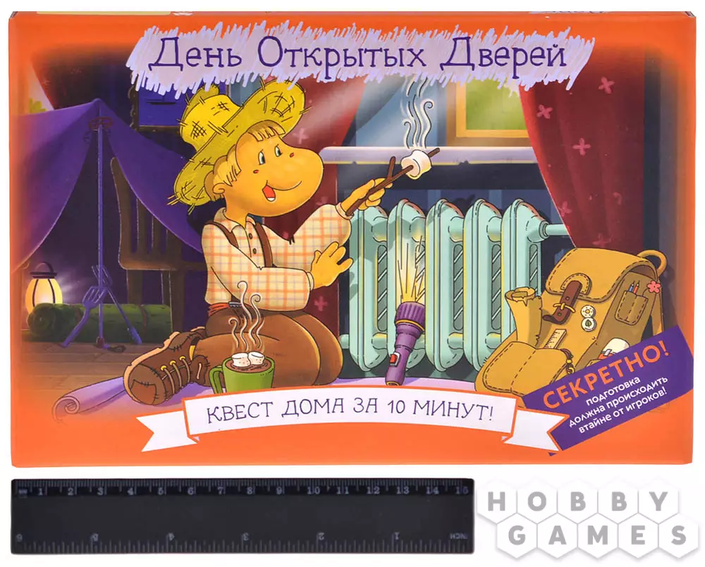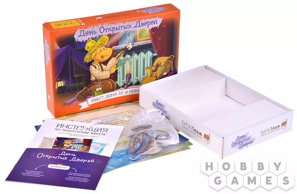 Квест "День Открытых Дверей" поможет детям стать самыми настоящими детективами! Им предстоит решать одну задачку за другой, чтобы которые в конечном итоге приведут к результату и расскажут историю целиком. Всё необходимо для увлекательно мероприятия уже есть внутри этой небольшой коробочки. Всё, что от вас потребуется – 10 минут, чтобы спрятать дома загадки согласно инструкции. Этот квест есть в двух версиях для разных возрастных категорий: данная коробка отлично подойдёт для детей 7-9 лет. Отличие коробок в сложности задач и объёме текста, который понадобиться читать в процессе решения задач.