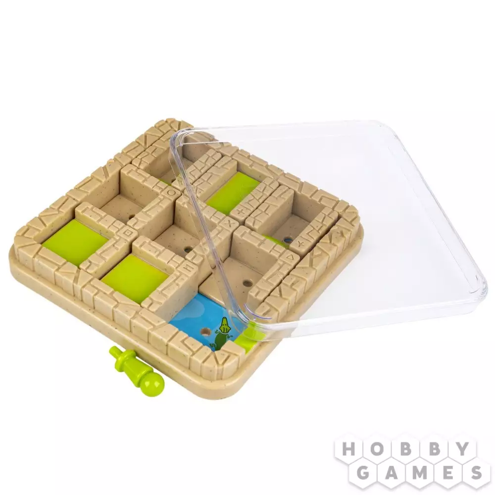 Выберите одно из заданий и разместите детали головоломки на поле согласно стартовой позиции. После этого вам нужно передвигать элементы таким образом, чтобы образовался проход для вашей игровой пешки (персонажа). У лабиринта есть верхний и нижний уровни, которые меняются друг с другом при помощи деталей с лестницей. Учтите, что стены передвигаются исключительно скольжением, поднимать их нельзя!