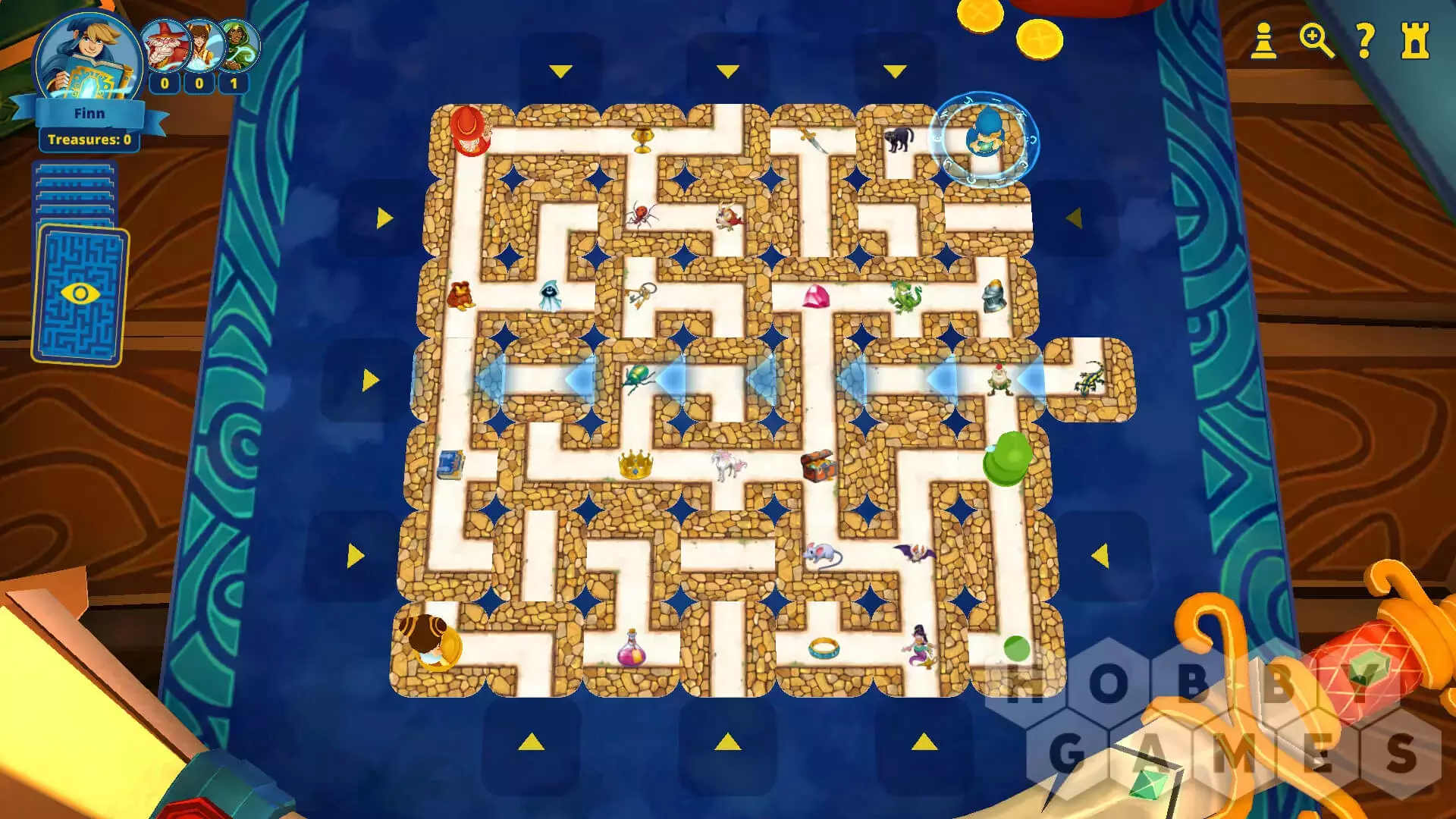 В поисках таинственных предметов и существ игроки бродят по лабиринту, примерив на себя роли мага, ведьмы, предсказательницы и ученика чародея. Выигрывает тот, кто первым находит выход. К счастью, все герои могут использовать магию, чтобы передвигать стены лабиринта. Путешествуя через изменчивый лабиринт, каждый игрок должен попытаться первым добраться до тайных мест. Загадочные карточки подскажут, какова ваша следующая цель: привидение, связка ключей, сова или что-то другое. Победителем станет тот, кто первым откроет все секреты и вернется к началу. В начале каждой игры все карточки перемешиваются, поэтому ни одно прохождение не будет походить на другое. Вы точно не заскучаете!