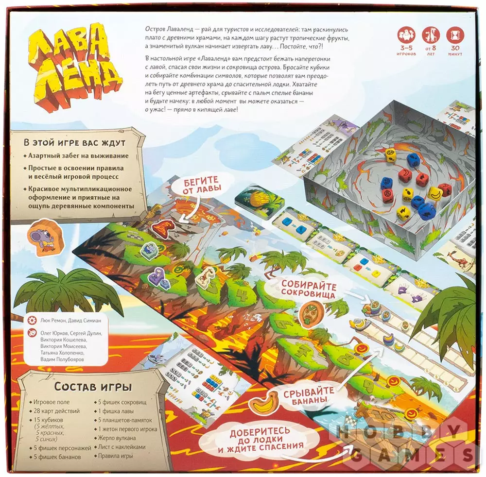 "Лаваленд" – это быстрая и азартная гонка на выживание. От трёх до пяти игроков будут пытаться пересечь остров во время извержения вулкана, спасаясь при этом от приближающейся беспощадной лавы. Но добраться до спасительной лодки – это полдела, сесть в неё можно, только накопив достаточное количество провианта. А победит тот, кто сможет, ко всему прочему, захватить с собой как можно больше туземных реликвий.