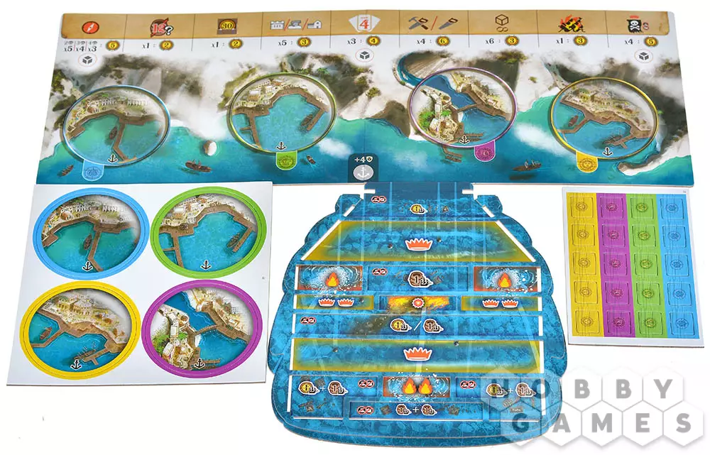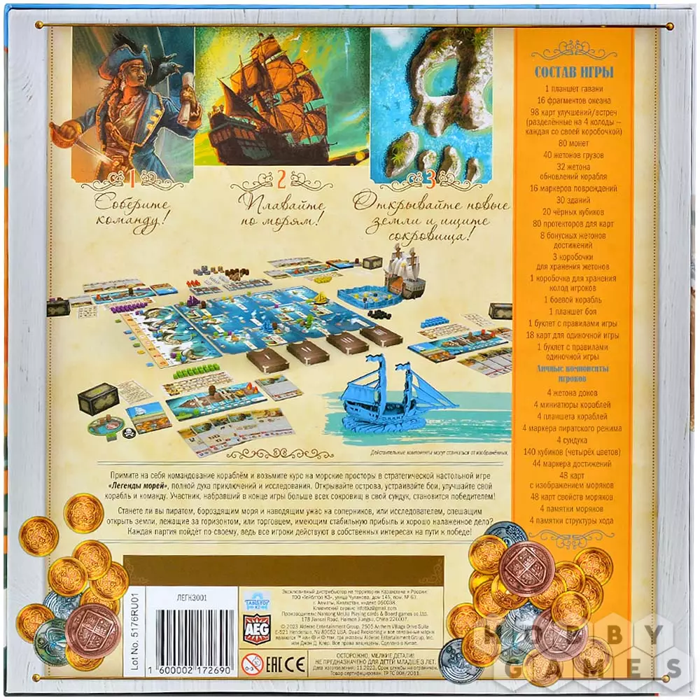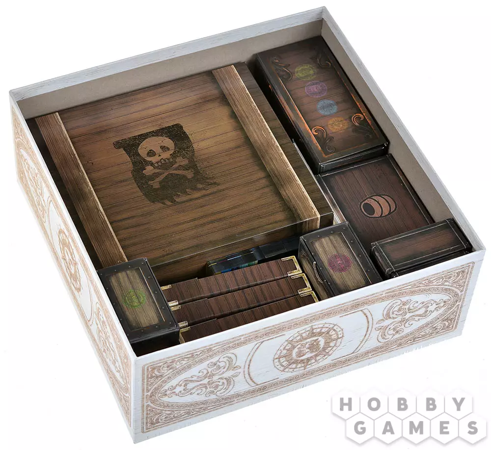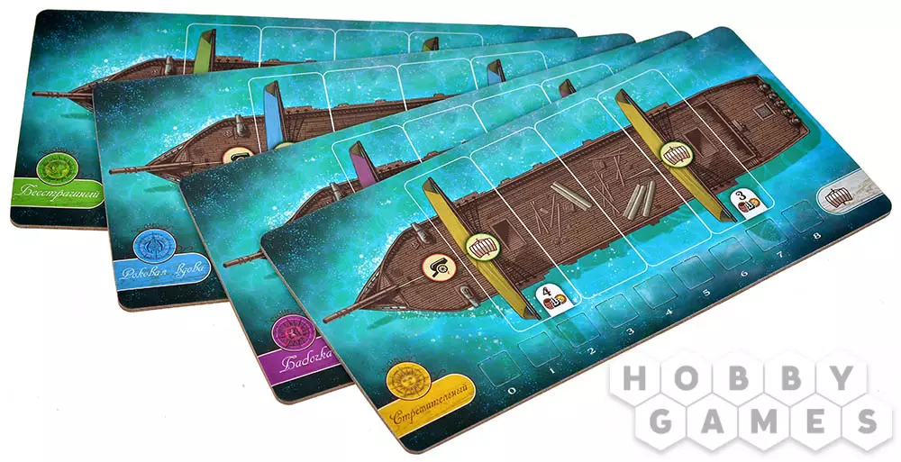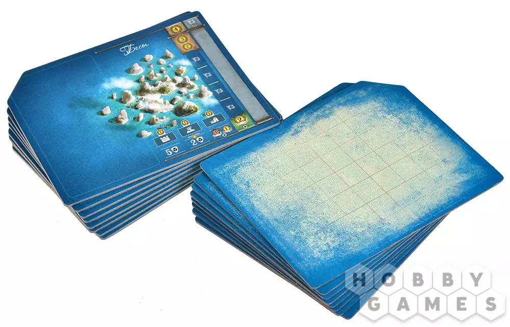 По мере продвижения вы будете совершенствовать корабль: увеличивать скорость, расширять трюмы и усиливать боевые качества. Команда тоже растёт вместе с вами – персональная колода карт открывает уникальную механику развития, позволяя переворачивать карты прямо в протекторах и добавлять новые навыки. Захват островов приносит товары, а построенные на них здания укрепляют ваши позиции и открывают дополнительные возможности. В морских боях всё решают броски кубиков: вас ждут схватки с другими капитанами и столкновения с торговыми судами, где риск и удача идут рука об руку.