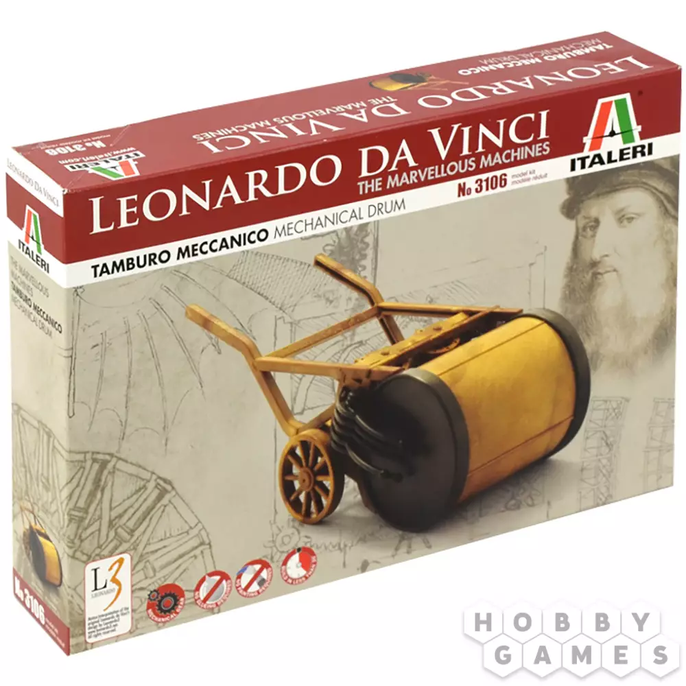 Перед вами сборная модель одного из самых необычных музыкальных изобретений Леонардо да Винчи. Этот механический барабан был создан для парадов, шествий и военных церемоний – и стал ярким примером того, как инженерия и искусство сливаются воедино. Во время движения или при вращении ручки барабан сам отбивает ритм – всё благодаря скрытому внутри механизму, продуманному до мелочей. Леонардо даже придумал способ менять темп, чтобы барабан мог звучать по-разному. Соберите этот удивительный инструмент и откройте для себя музыку, спрятанную в механике!