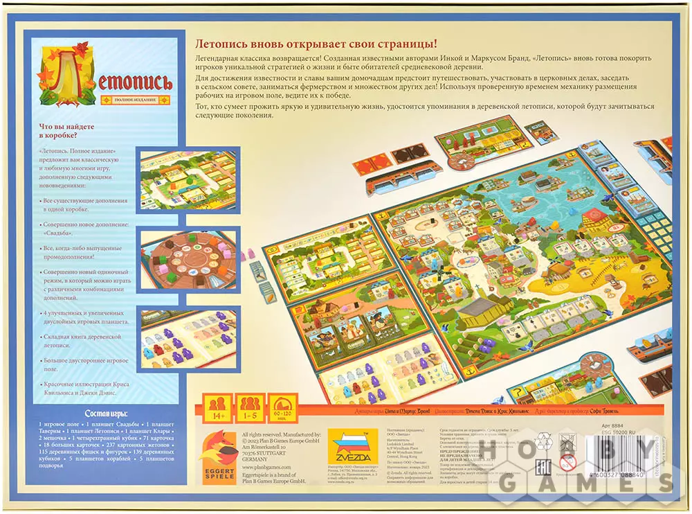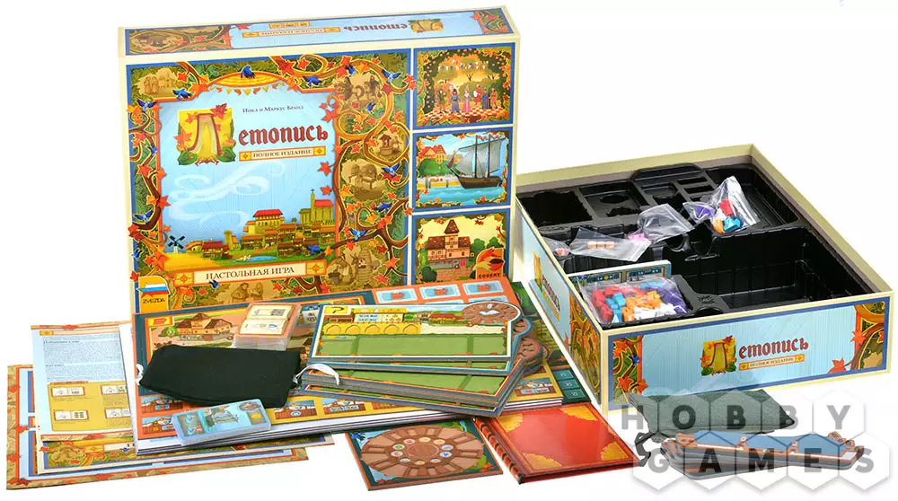 В настольной игре "Летопись. Полное издание" каждый из игроков становится главой семьи, цель которого – добиться особого почёта и прославить свой род на века! Игра длится несколько раундов, в течение которых вам предстоит распоряжаться судьбами своих домочадцев, отправляя их на ключевые посты деревни, чтобы заработать победные очки. Каждый район несёт определённую выгоду, и порой для достижения цели на одном посту приходится потрудиться на других. Не забывайте о главном – ничто не вечно, а люди тем более. Достигнув определённого "возраста" фишки ваших домочадцев будут уходить на покой. А в зависимости от того, смогли они достигнуть каких-либо высот за свою жизнь или нет, они будут отправляться или в деревенскую летопись, прославляя ваш род, или в могилу на погосте.