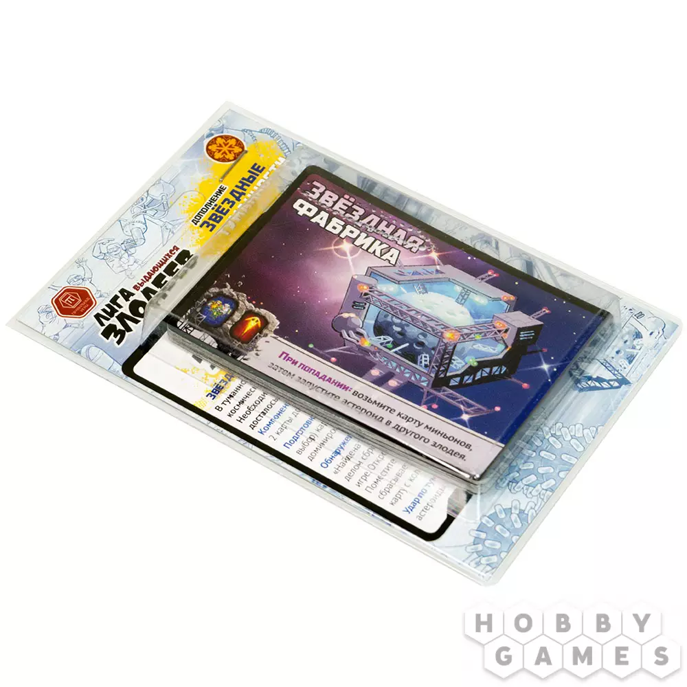 "Звёздные туманности" – дополнение для настольной карточной игры "Лига выдающихся злодеев". В своём путешествии суперзлодеи обнаружили старинные космические структуры, оставленные давным-давно первыми злодеями. Нужно срочно отправлять разорительную экспедицию, ведь Ваши соперники не спят и тоже заметили станции. Заводите астероиды и вперёд, в туманность!