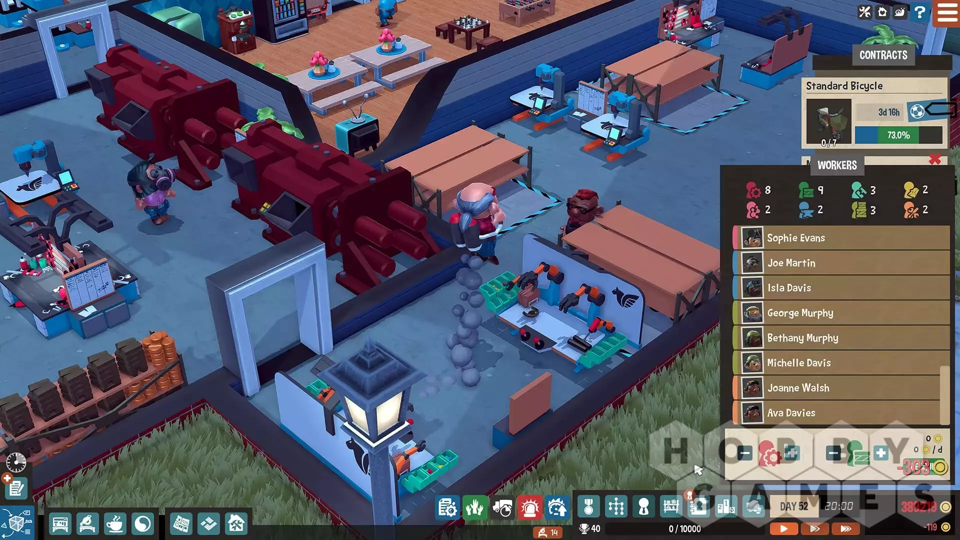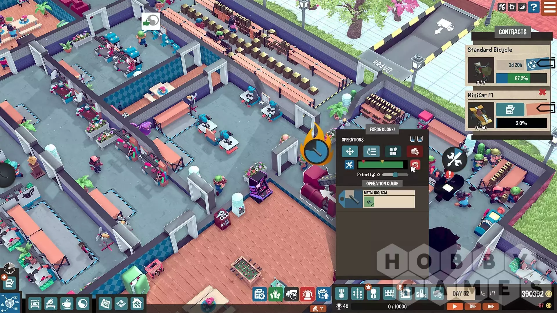 Начните с небольшой мастерской и расширьтесь до огромного завода. Открывайте крутые станки, добавляйте новые методы производства и растите, растите! Не успеете обернуться, как у вас уже будет несколько линий производства, на которых ваши трогательные работники будут каждый день изготавливать сотни сложных продуктов.