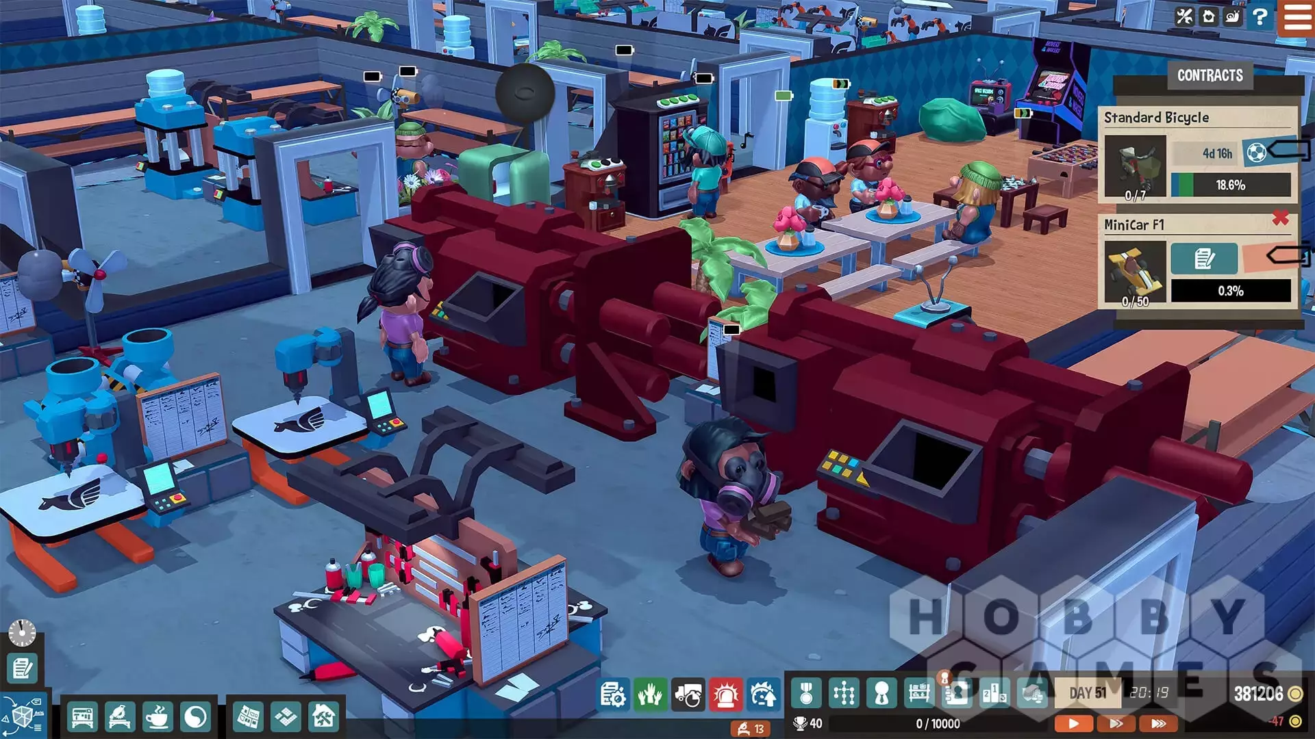 Сядьте в кресло Большого начальника и возьмите на себя управление собственным настольным заводом. Организуйте работу в цехе, управляйте работниками, закупайте станки и проектируйте эффективные линии производства — все, чтобы успеть к обозначенному сроку и удовлетворить клиентов!