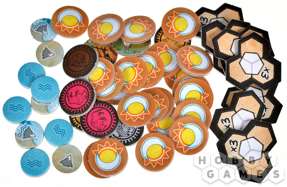 Также, до или после обязательного действия, можно выполнить одно дополнительное действие: получить новую карту, наняв персонажа и оплатив его стоимость в ресурсах; или устроить привал, чтобы вернуть разыгранные карты персонажей на руку. Привал тормозит вашу экспедицию, так как требует времени.