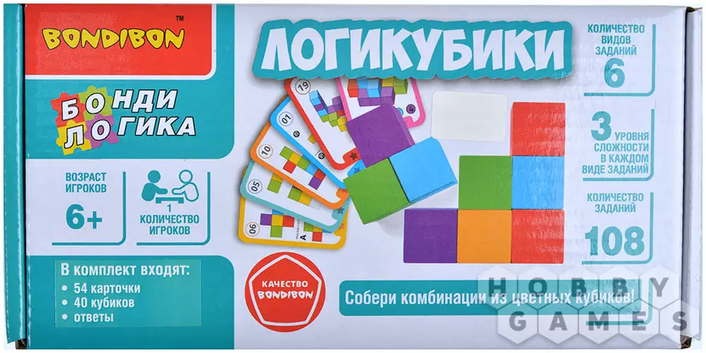 Вам нужно собрать комбинацию из цветных кубиков, повторяя картинку на карточке. Если ребёнок уже справляется сам, попробуйте сыграть вместе на скорость или выбрать более сложные задания. В этом наборе до 6 разных видов заданий с тремя уровнями сложности каждое.