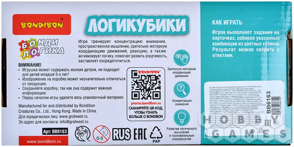 Игра не только весёлая, но и полезная: она развивает концентрацию, внимание и пространственное мышление у малыша. Ребёнок сможет играть самостоятельно благодаря ответам, прилагающимся к набору.