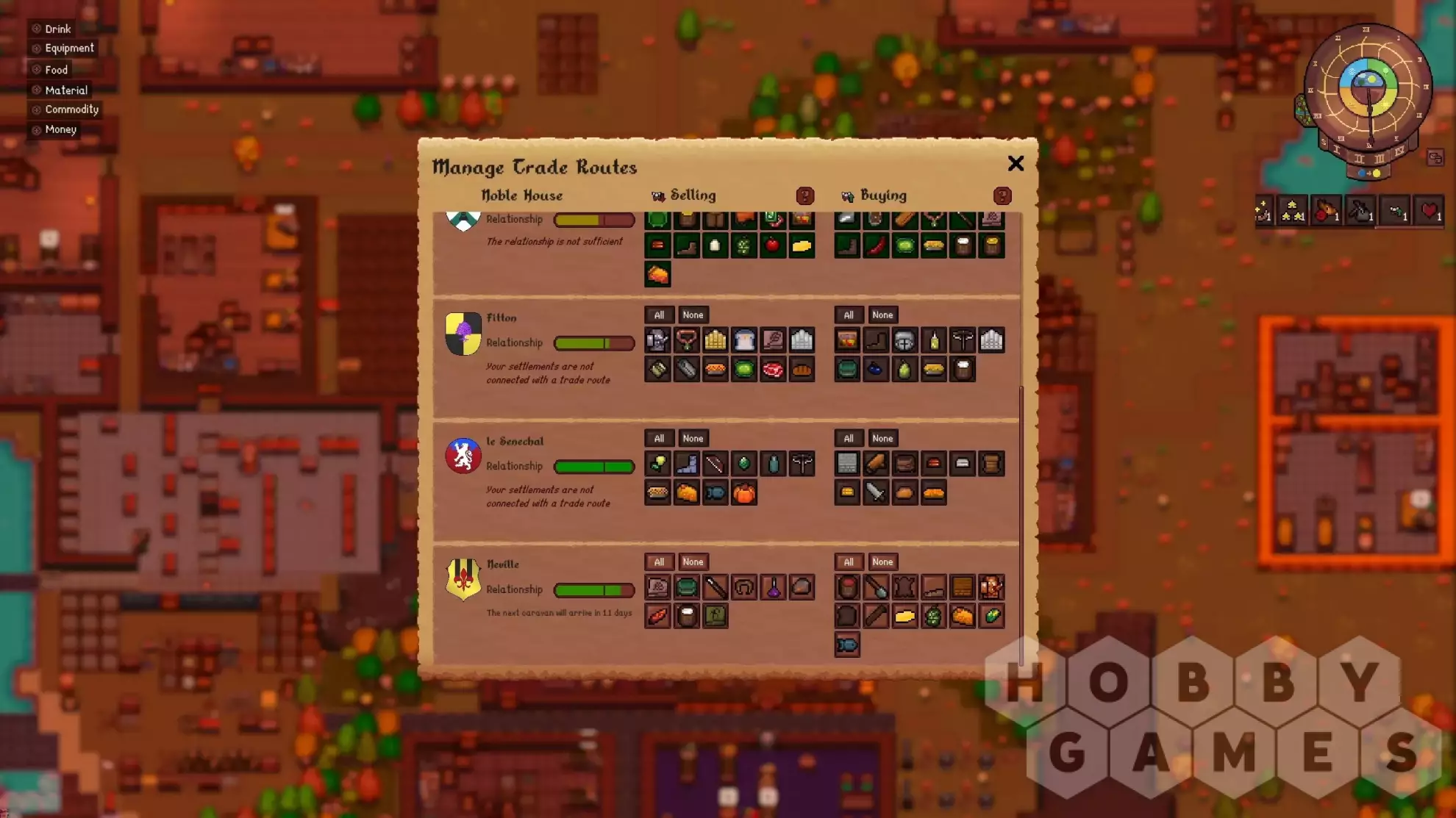 Стройте торговые маршруты между городами и заключайте торговые сделки, чтобы привлечь новые караваны в ваше поселение.