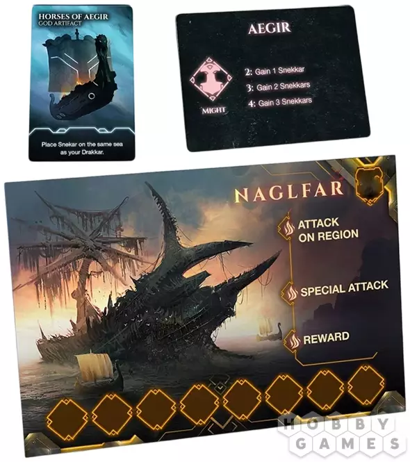 В дополнении Seas of Aegir к игре присоединяется бог Эгир. Благодаря ему игрокам теперь доступны морские атаки. Однако появляется и новый противник – призрачный корабль Нагфлар. Этот корабль-призрак неустанно патрулирует морские регионы, создавая серьёзные препятствия для игроков: он блокирует возможности и представляет серьёзную опасность для армий, оказавшихся вблизи побережья.