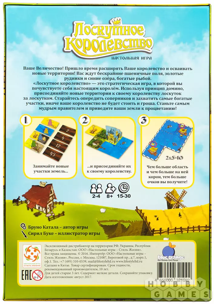 Покровская20.02.2020 02:44Очень красивое и качественное оформление игры. Иллюстрации очень милые, правила не сложные, партии не затянутые по времени. Играем всей семьей: даже 5ти летний ребенок втянулся и с удовольствием выкладывает свое королевство! Мы только помогаем не выходить за границы квадрата - остальное делает сам. Благодаря детям присутствует сильный эффект неожиданности - они часто берут не те карты, что нужны, а те, что красивее)))