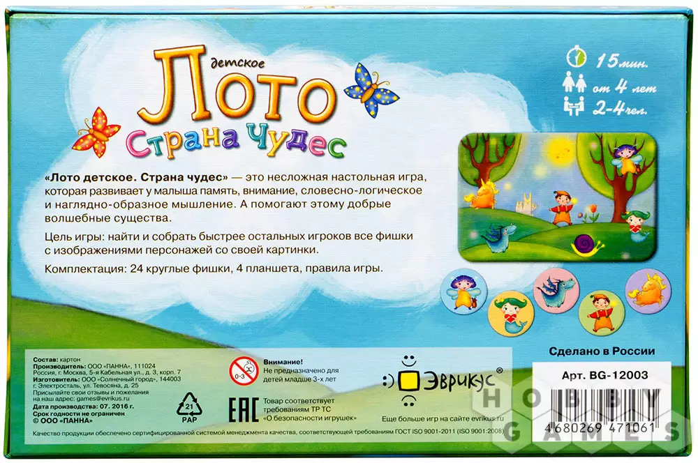 Larniya16.10.2020 17:27Не плохой вариант лото для детей. В комплекте 4 карточки оформленных в сказочных иллюстрациях - 4 времени года. цвета приятные постельные. Дизайн иллюстраций приятный, и не сказать, что бы прям "девчачий", скорее нейтральный. На каждую карточку 6 круглых картонных фишек. Правила прилагают поиграть в гибрид мемори и лото, но не чего не мешает играть и по классическим правилам. Ребенку в 3 года это лото нравится больше других, играем с удовольствием.