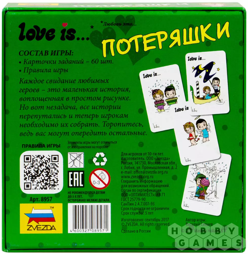 Настольная игра "Love is... Потеряшки" основана на классической механике "мемори". Вам предстоит собрать из пятидесяти карточек три на заданную тематику.