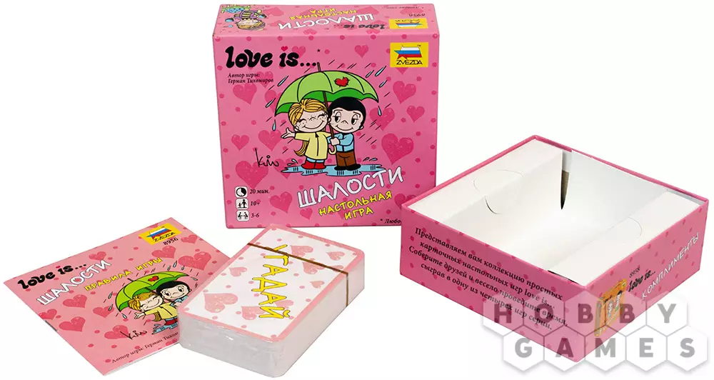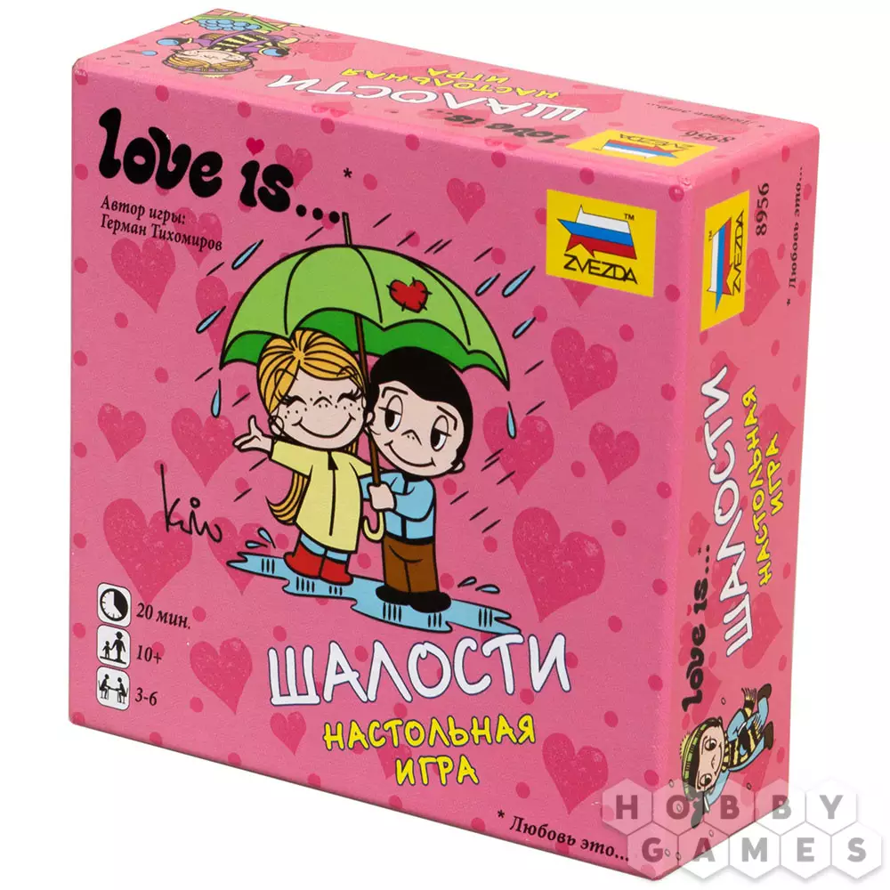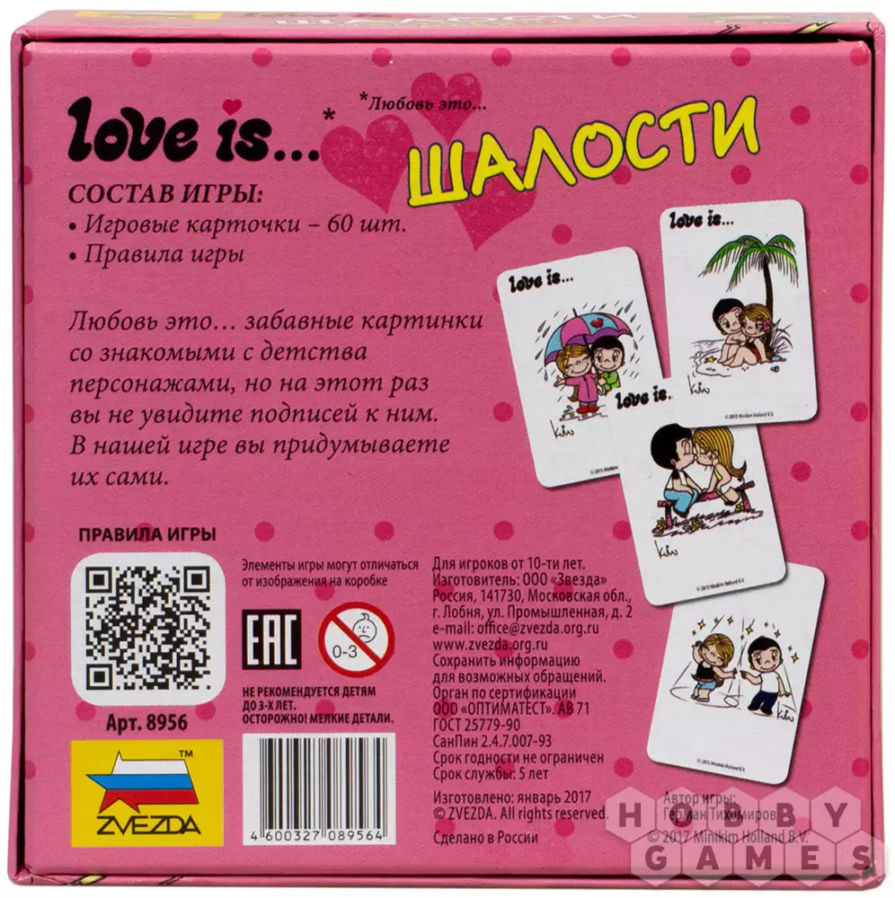 В настольной игре "Love is... Шалости" одному игроку предстоит придумывать подписи к картинкам на карточках, а затем рассказать об этом другому, который в свою очередь должен жестами изобразить загаданное.