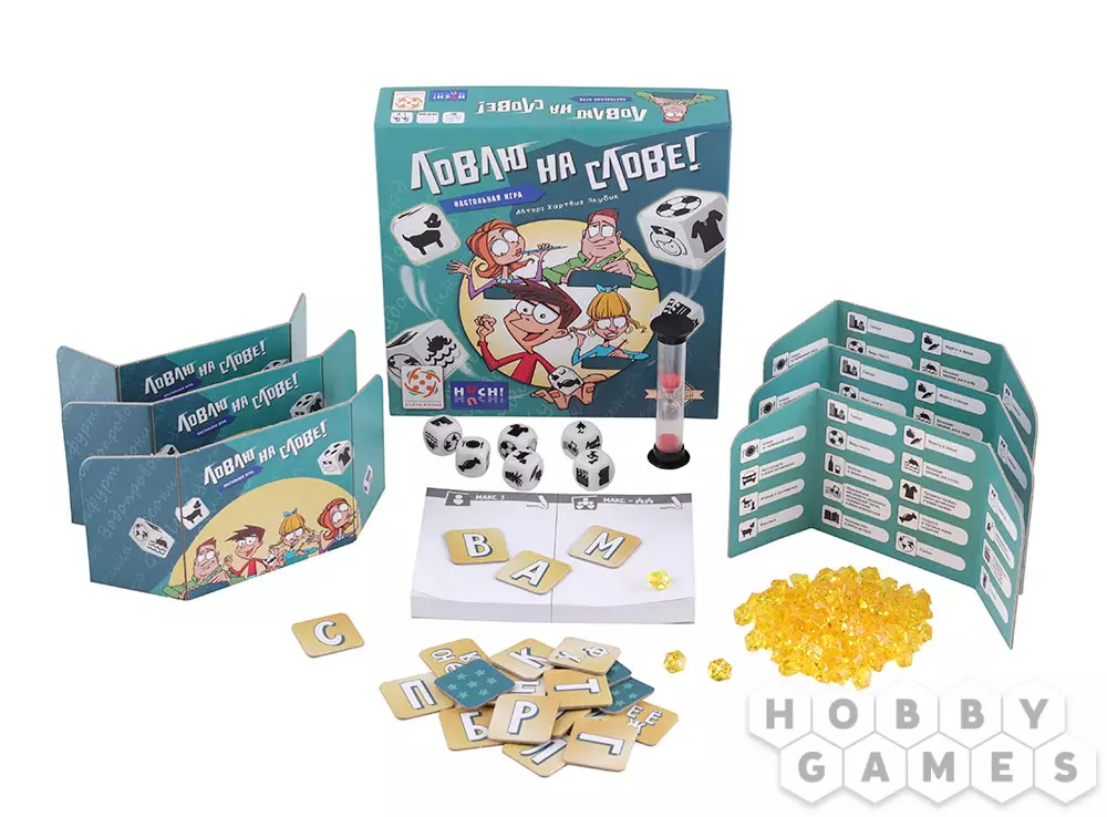 В настольной игре "Ловлю на слове" участникам предстоит не просто придумывать слова на заданную тему и букву, но и всячески препятствовать конкурентам в этом.