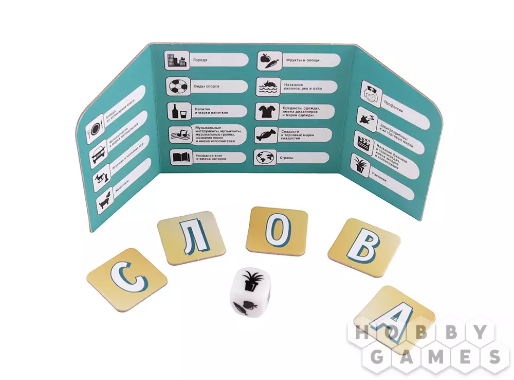 В начале игры каждому игроку выдаётся ширма и блокнот. В свой ход нужно бросить кубики, после чего выбрать один из них и положить перед собой. Оставшиеся кубики разбирают остальные игроки. Верхний жетон из стопки переворачивается так, чтобы всем была видна буква, изображённая на нём, после чего запускается время. За минуту игроки должны придумать по три слова на эту букву, подходящие по смыслу к выбранной на грани кубика теме. Кстати, различных тем на кубиках предостаточно – от еды, спорта, растений и зданий до спорта, профессий, кино и животных. В общем, найдётся, где развернуться вашей фантазии и кругозору!