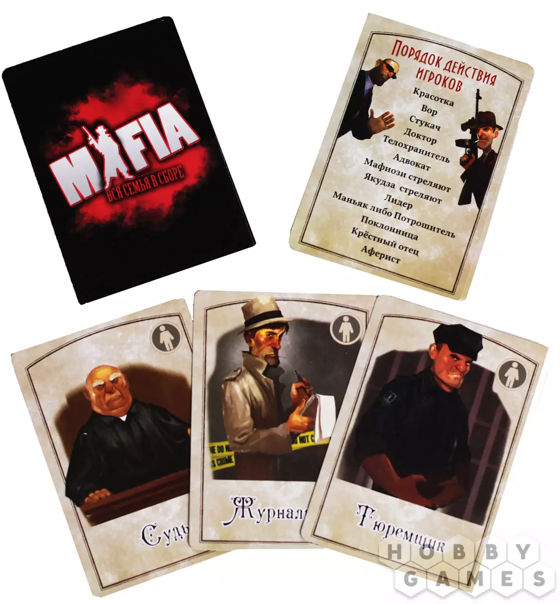 Во-первых, конечно, это габариты! Маленькую упаковку можно будет взять куда угодно и насладиться игрой в "Мафию" на природе, в гостях или кафе! Во-вторых, в наборе, в отличие от старшего собрата, отсутствуют маски, но это не делает игру хуже – колода также содержит полный набор персонажей и буклет с правилами! А правила, как Вы поняли, хоть и достаточно просты, однако, из-за духа недоверия, интриги, подозрения и постоянного обмана игра точно захватит Вас и принесёт много приятных переживаний!