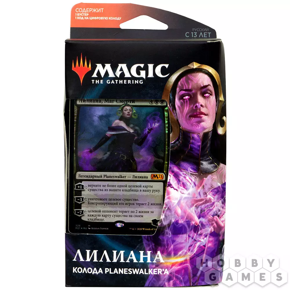 Planeswalker Лилиана, Маг Смерти – самый сильный маг тёмных сил и, конечно же, её место в рядах чёрного цвета в "Базовом Выпуске 2021". Смерть ваших существ не продлится долго, зато принесёт вам награду. А отправив на кладбище как можно больше существ оппонента, вы сможете испить все его жизненные силы за один раз.