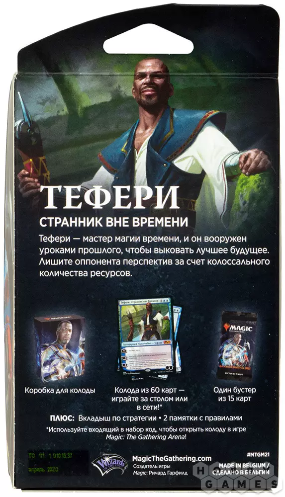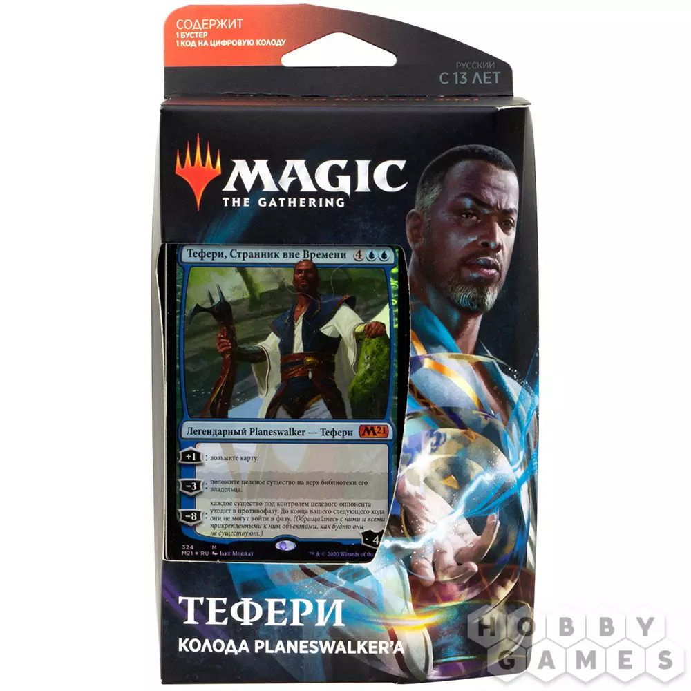 Planeswalker Тефери – Странник вне Времени, буквально путешествует во времени, и сюжет "Базового Выпуска 2021" – его рук дело. Магия времени всегда была отличительной чертой синего цвета, поэтому и колода Тефери именно такого цвета. Берите карты каждый ход, возвращайте существ противника бумерангом, но не в руку, а на верх колоды.