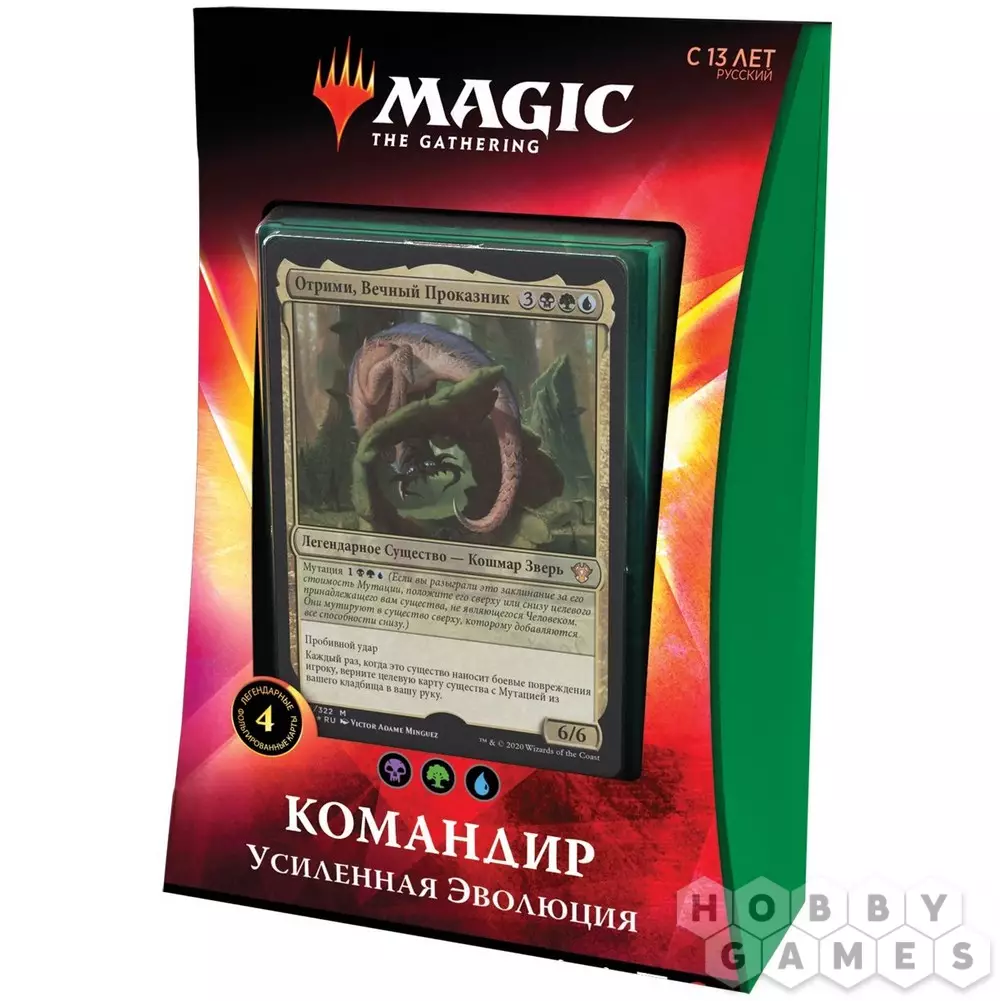 Усиленная Эволюция представляет собой уникальные карты с Мутацией, которые были разработаны специально для "Командирского" формата игры в Magic. Если вы давно находились в поисках чего-то неожиданного и хотели проявить изобретательность, то теперь для вас есть карты, которые позволят в полной мере использовать возможности, например, "Отрими" или "Кошмар-гидры".