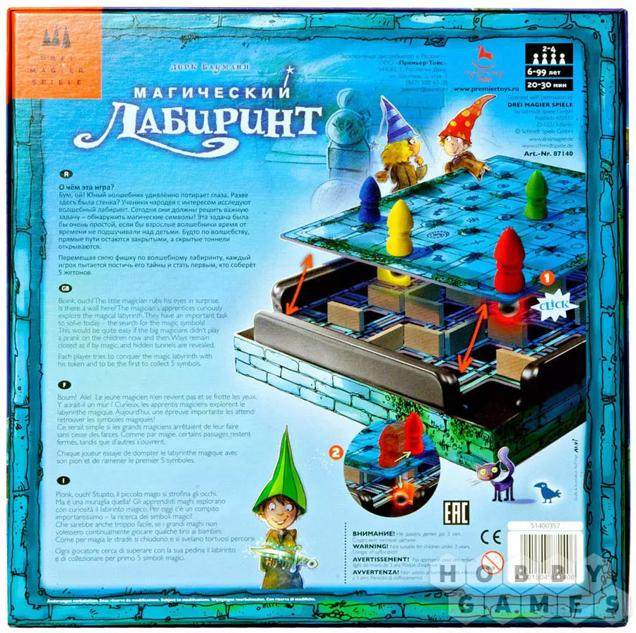 Настольная игра "Магический лабиринт" – отличная семейная игра, в которую будет интересно играть и детям и родителям. Уверены, что и взрослая компания будет рада побродить по магическому лабиринту. Несмотря на простоту идеи, в процессе игры возникает чувство, как будто и в самом деле, происходит маленькое волшебство. Невидимые стены, ехидное "Бом!" вашего упавшего шарика и искренняя радость, если вы благополучно дошли до цели, избежав опасности и опередив других игроков. Хорошая память, а также внимательность, вот что вам позволит почти безошибочно выбирать "правильную" дорогу к нужному артефакту!