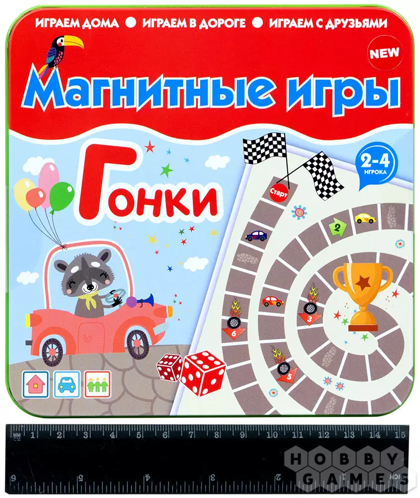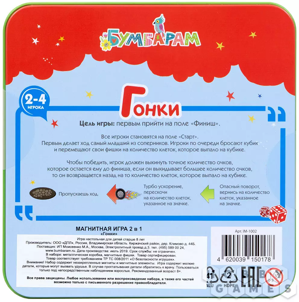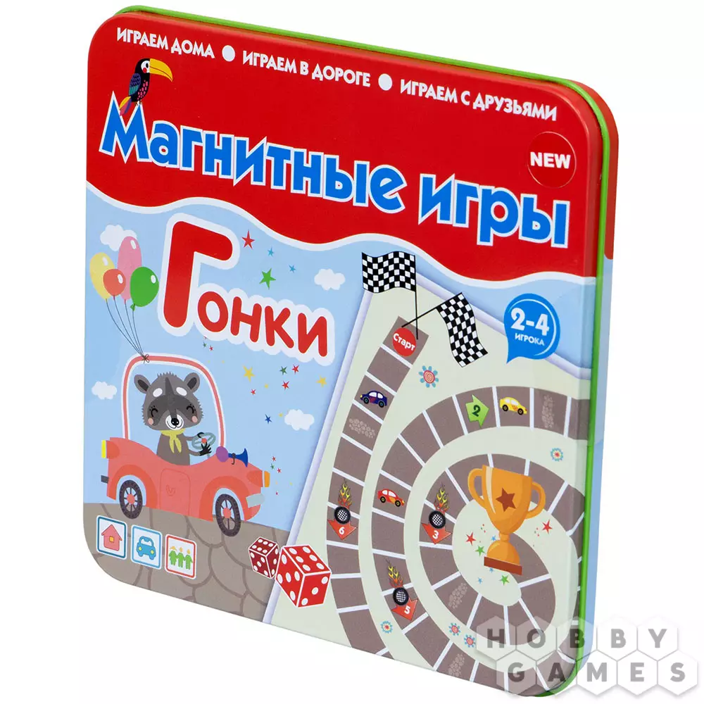 Пристегнитесь получше – и давите газ в пол! Суть большей части гонок: надо быть самым лучшим, самым быстрым и прийти к финишу первым, и здесь эта суть осталась неизменной. Магнитная игра "Гонки" порадует маленьких фанатов автоспорта, причём играть в неё можно не только сидя дома за столом, но и в дороге! Фишки крепятся к доске при помощи магнитного притяжения и не закатятся в первую попавшуюся щель сразу, как вас слегка тряханёт где-нибудь в поезде или автомобиле. В ходе игры вам предстоит выбрать фишку и привести её к финишу, руководствуясь результатами бросков кубиков и заданиями, написанными на некоторых игровых полях. Вперёд, к победе!