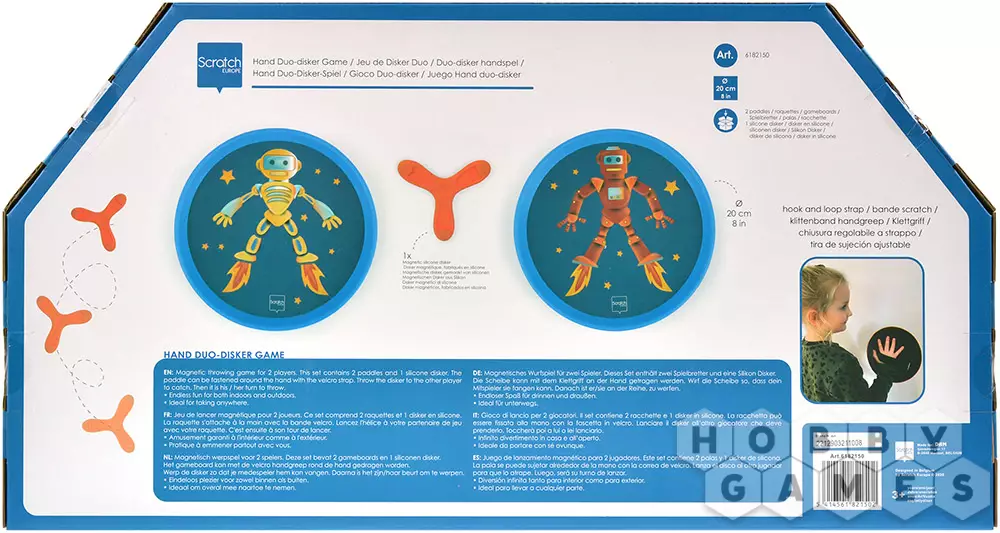 Активные игры – это прекрасно. Притом неважно, в доме или на улице. Магнитная игра Hand-Disker Duo как раз относится к виду активного развлечения. В комплекте этой коробки вы найдёте 2 магнитных диска, которые крепятся на руку с помощью застёжки-липучки (что позволяет регулировать крепление на любой ладони), и "спиннер" (мы так его назвали, потому что формой он напоминает именно его). Он не крутится, но магнитится к дискам. Двум игрокам предстоит перебрасывать этот самый "спиннер" друг другу и ловить его. Тот, кто не справился с поимкой – пропускает гол. Побеждает самый ловкий игрок, сумевший поймать "спиннер" больше другого игрока.