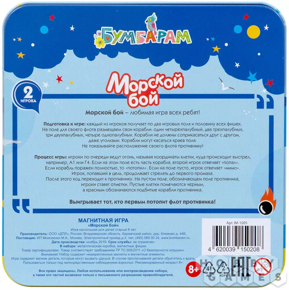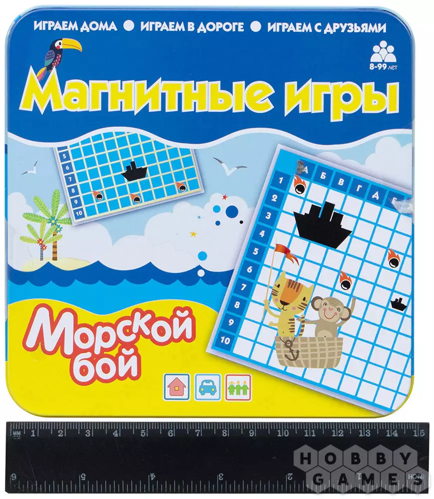 В "Морской бой" играли и продолжают играть вот уже несколько поколений. Теперь больше не нужно искать ручку и листы бумаги, чтобы начать игровое сражение: у вас в руках простое издание классической игры. Удобная коробочка с дополнительными игровыми полями, фишками кораблей и метками выстрелов позволят вам получить удовольствие от полюбившейся с детства игры везде, куда бы вы ни отправились!