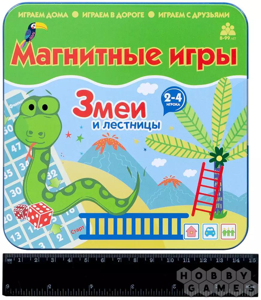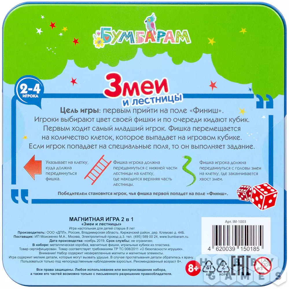 "Змеи и лестницы" – известная классическая настольная игра с очень простыми правилами, которая будет одинаково интересна и детям и взрослым. Данное издание отличается компактными размерами и магнитными компонентами, что позволяет с лёгкостью взять её с собой и скоротать время в пути или же устроить настольное состязание на даче или на природе.
