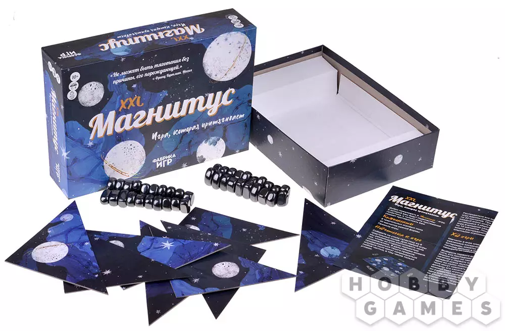 Сотворить собственную галактику – возможно! Окунитесь в мир звёздной пыли вместе с настольной игрой "Магнитус". Перед началом игры необходимо собрать поле, на котором будут размещаться магниты – своеобразные космические тела (планеты, астероиды и т. д.). Задача игроков – распределить их так, чтобы они не притянулись друг к другу и не произвели коллапс. Участники могут перемещать объекты без использования рук, а с помощью других магнитов. Победителем окажется тот, кто выложит все магниты на космическое поле, при условии, что они не притянутся друг к другу и не окажутся на столе. В этом случае другие игроки получают штрафные баллы, равные количеству оставшихся у их небесных тел. Также можно играть в одиночном режиме. Игра можно усложнить, добавив в ней правило чёрных дыр. Всё в ваших руках!