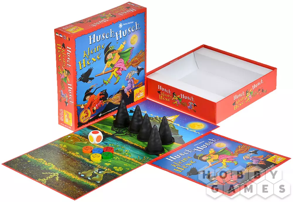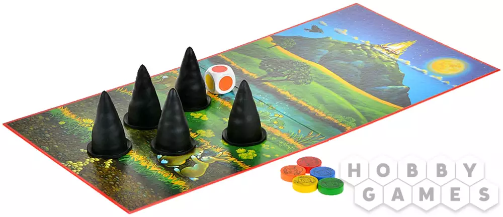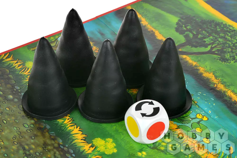 Правила игры очень просты, но хорошо развивают внимание самых маленьких игроков. Всего у вас будет 5 ведьмочек, скрытых под шляпами. Задача проста: бросить кубик, посмотреть, какой выпал цвет, и передвинуть вперёд ведьмочку (а точнее, её фишку) такого же цвета. Загвоздка в том, чтобы сперва угадать, а затем вспомнить, где прячется какая колдунья! А уж учитывая, что порой их придётся менять местами... В общем, расслабиться не получится, а вот повеселиться – более чем!