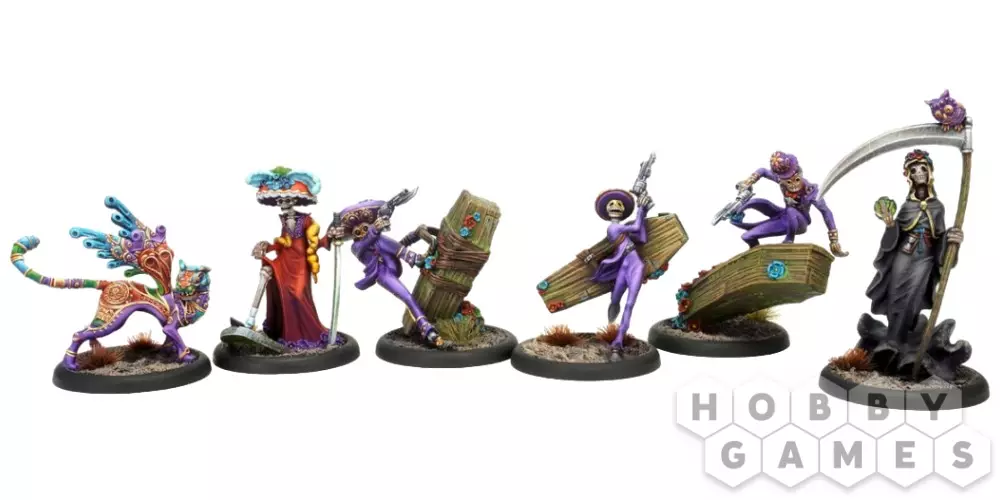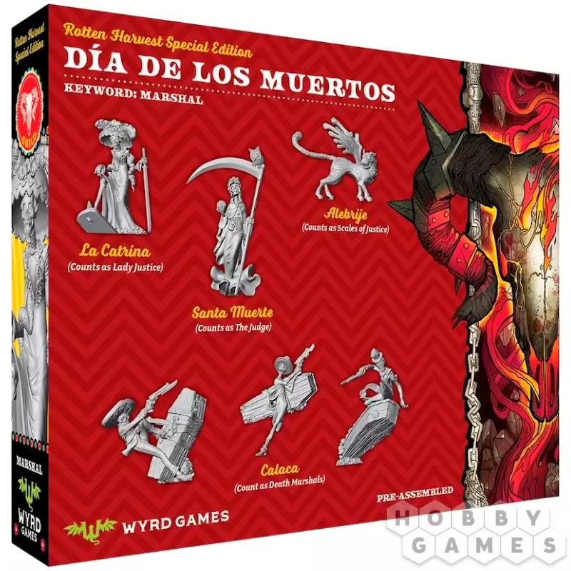Старая знакомая Lady Justice предстаёт в этой коробке в образе La Catrina: элегантно одетый скелет, которого традиционно можно увидеть на праздновании Дня мертвых. Santa Muerte заменяет собой Judge в облике того, кто дарует мёртвым вечный покой. Вместо Scales of Justice вы найдёте Alebrije, который был вдохновлён мексиканским народным искусством. Ну и команда не была бы полной без нескольких Calacas. Их резные гробы и ухмыляющиеся черепа заменяют Death Marshals.