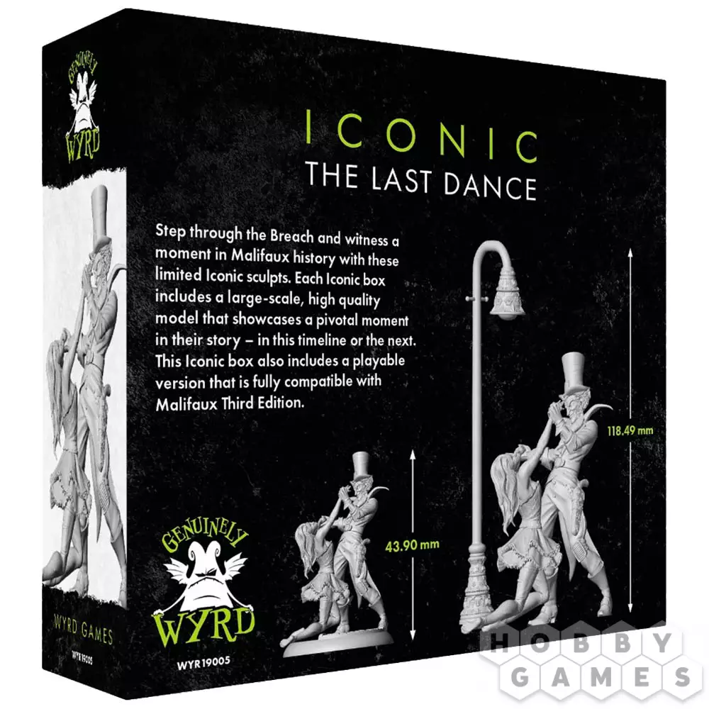Malifaux 3E: The Last Dance (Seamus) – новое пополнение в линейке Wyrd Iconic, где персонажи получают больше внимания, чтобы блеснуть как на поле боя, так и на вашем столе для покраски. Эта несобранная скульптура изображает самого известного серийного убийцу Seamus, танцующего с только что воскрешённой Belle. Пара стоит под одиночным фонарём – идеальная сцена для практики покраса с направленным освещением!