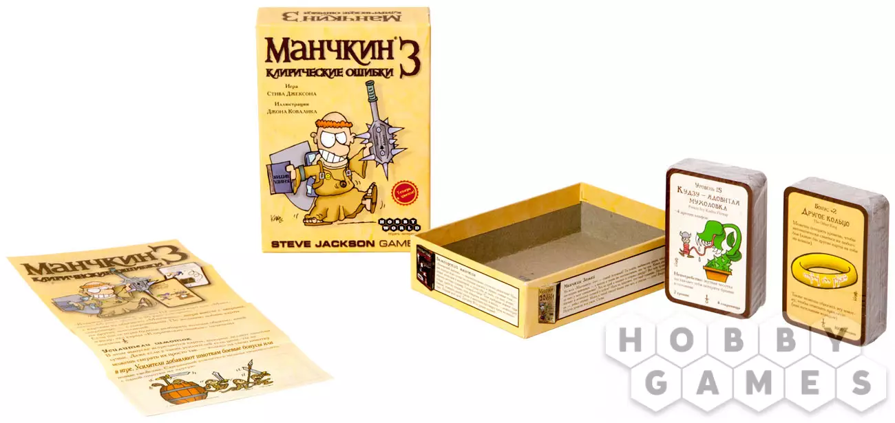 Hobbygames16.07.2014 19:20Добрый день! Раньше 3-ий Манчкин не издавался в цвете. Возможно будущие тиражи манчкинов с 5 по 8-ой тоже будут в маленькой коробочке, но так как они уже выпущены в цвете не планируется их переиздание.
