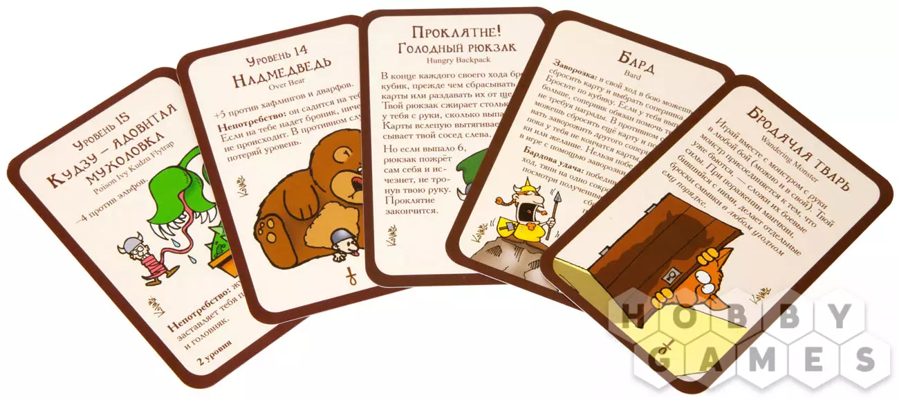 В начале партии игроки начинают как обычные люди своего пола (да-да, в игре есть даже различие полов!) первого уровня. В ваш ход вы выбиваете дверь, то есть переворачиваете верхнюю карту колоды дверей, и выполняете условия, написанные на карте. Если же это карта монстра, то вам не повезло и придётся вступить с ним в бой. Когда сила игрока больше или равна силе монстра, тогда игрок побеждает и может взять столько карт сокровищ, сколько указанно на карте с монстром. Во время боя другие игроки могут помогать товарищу и вступить с ним в бой, или же мешать и всячески усиливать вылезшего врага. Если игрок побеждает в бою, то он получает один уровень. В течение партии игроки будут применять на себя разные классы и профессии, менять свой пол, напяливать различные шмотки, пить подозрительные зелья, а также сражать самых разнообразных монстров!