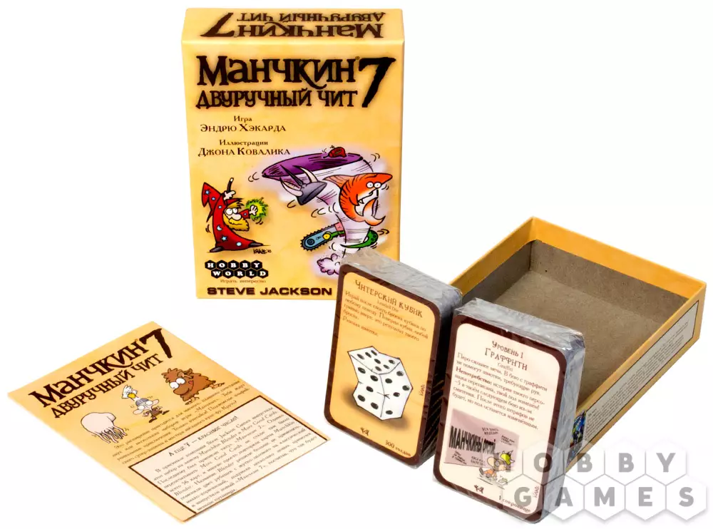 Манчкины, готовы ли вы еще к большей эпичности? Тогда дополнение "Манчкин 7. Двуручный чит (2-е рус. изд.)" вам отлично подойдёт! В него включены самые полезные и "вкусные" карты, которые ускорят, упростят и разнообразят игровой процесс. Это дополнение, в отличие от всех предыдущих, не только расширяет, но и связывает вместе все вышедшие выпуски "Манчкина"! Теперь вы можете смело замешивать самые необычные сочетания, например, "Пиратский Апокалипсис" или "Звёздный Зомби", и быть на сто процентов уверенными, что для всех самых невероятных комбинаций у вас хватит места. Теперь вы можете миксовать самые невероятные сочетания!