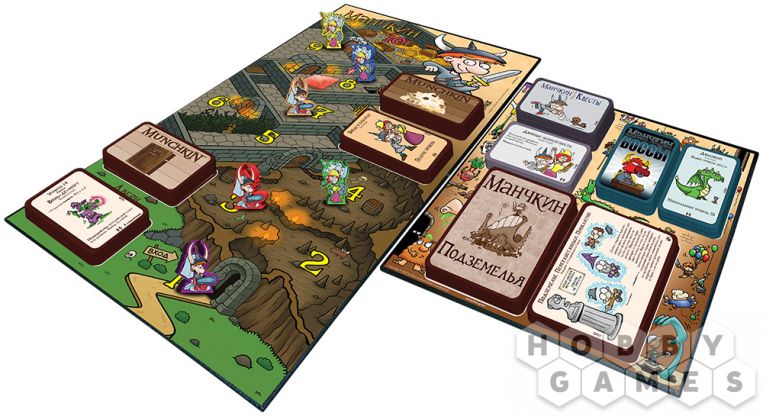 Итак, настольная игра "Манчкин" – это ролевая игра по форме, пародия по содержанию. Манчкины игроков ходят по подземелью, вытаскивают на свет божий тамошних чудовищных обитателей и либо раскаиваются в этом, либо получают за победу новые уровни и сокровища. Исход каждого подобного приключения (боя, короче) зависит от того, кто с чем на бой вышел. У игрока это уровень и бонусы/штрафы от шмоток, класса, расы и проклятий. У монстра это уровень плюс карты-усилители и разовые шмотки. Откуда шмотки у монстра? В Вашем бою могут принять участие и завистливые соперники: они могут помогать монстру и ослаблять вас. Поэтому, хотя в "Манчкин" и можно играть вдвоём, наберите на матч побольше народу: на руках будет больше проклятий, усилителей и зелий, которыми так легко изменить баланс сил в бою в любую сторону, и бдительные завистники не дадут никому из Вас выйти в единоличные лидеры гонки к 10-му победному уровню.