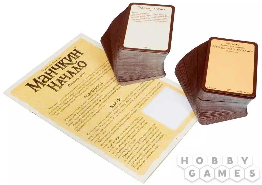 Игра "Манчкин" – локализация настольной карточной игры Munchkin. На русском языке игра, как ни старайся, приобретает новое звучание, но остаётся по-прежнему азартной, динамичной и злорадной. Ролевое зубоскальство по простым, но местами намеренно туманным правилам подвергает насмешкам благородных эльфов, мудрых магов, отважных воинов и мохноногих хафлингов. Клирики бьются с андедами, воры подрезают своих соперников в разгар боя, гигантские Кальмадзиллы и мерзкие Лицесосы стремятся отравить или отнять геройские жизни Ваших манчкинов, но так, на расслабоне, без долгих речей и многочисленных бросков разногранных костей, принятых в D&D, GURPS и прочих равенлофтах.