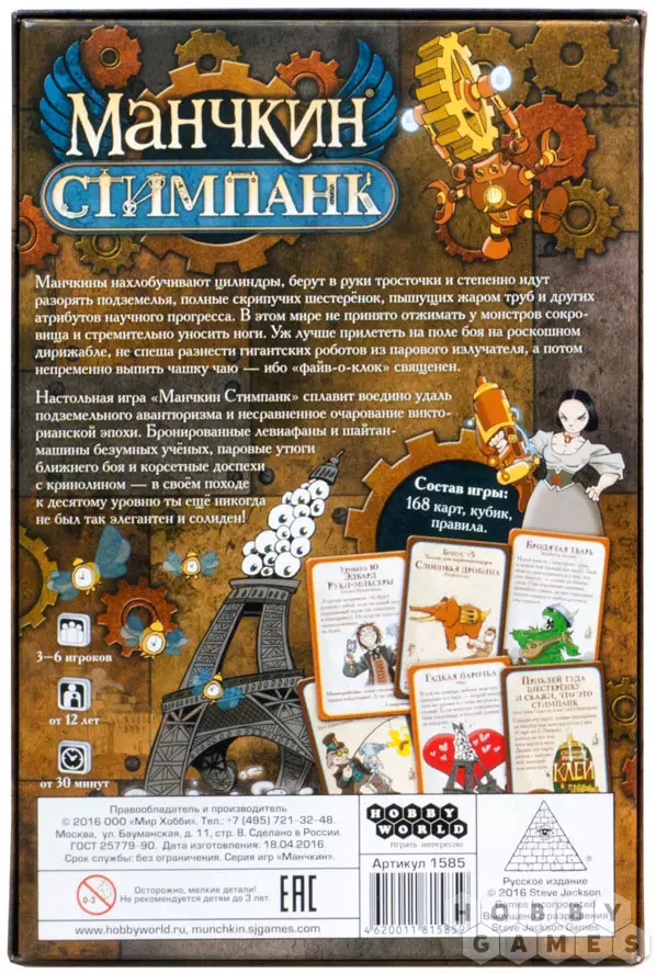 Настольная игра "Манчкин Стимпанк" сплавит воедино удаль подземельного авантюризма и несравненное очарование викторианской эпохи. Бронированные левиафаны и шайтан-машины безумных учёных, паровые утюги ближнего боя и корсетные доспехи с кринолином — в своём походе к десятому уровню вы ещё никогда не были так элегантны и солидны!